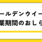誠に勝手ながら、弊社では以下の期間をゴールデンウィーク休業とさせていただきます。